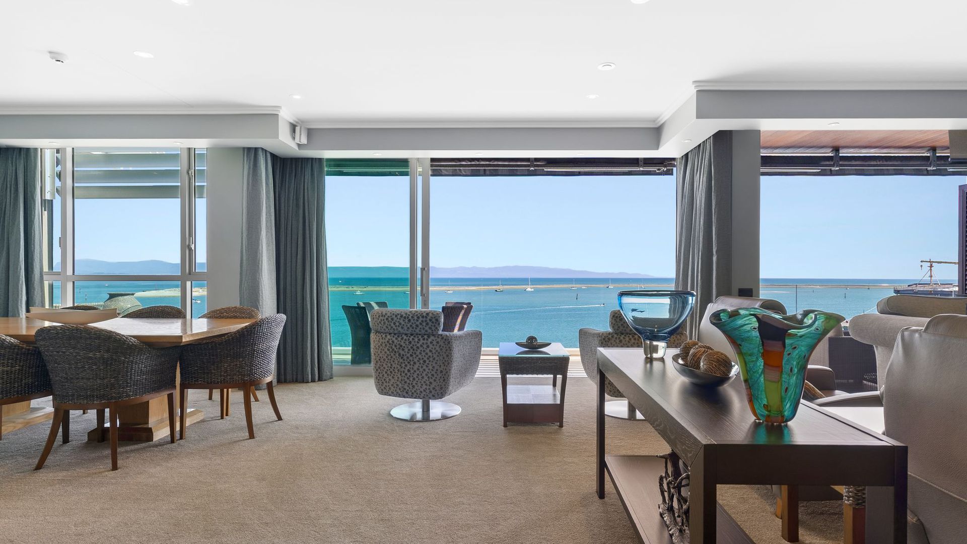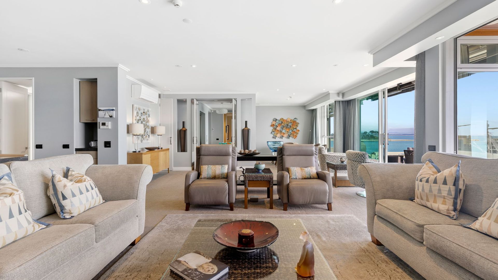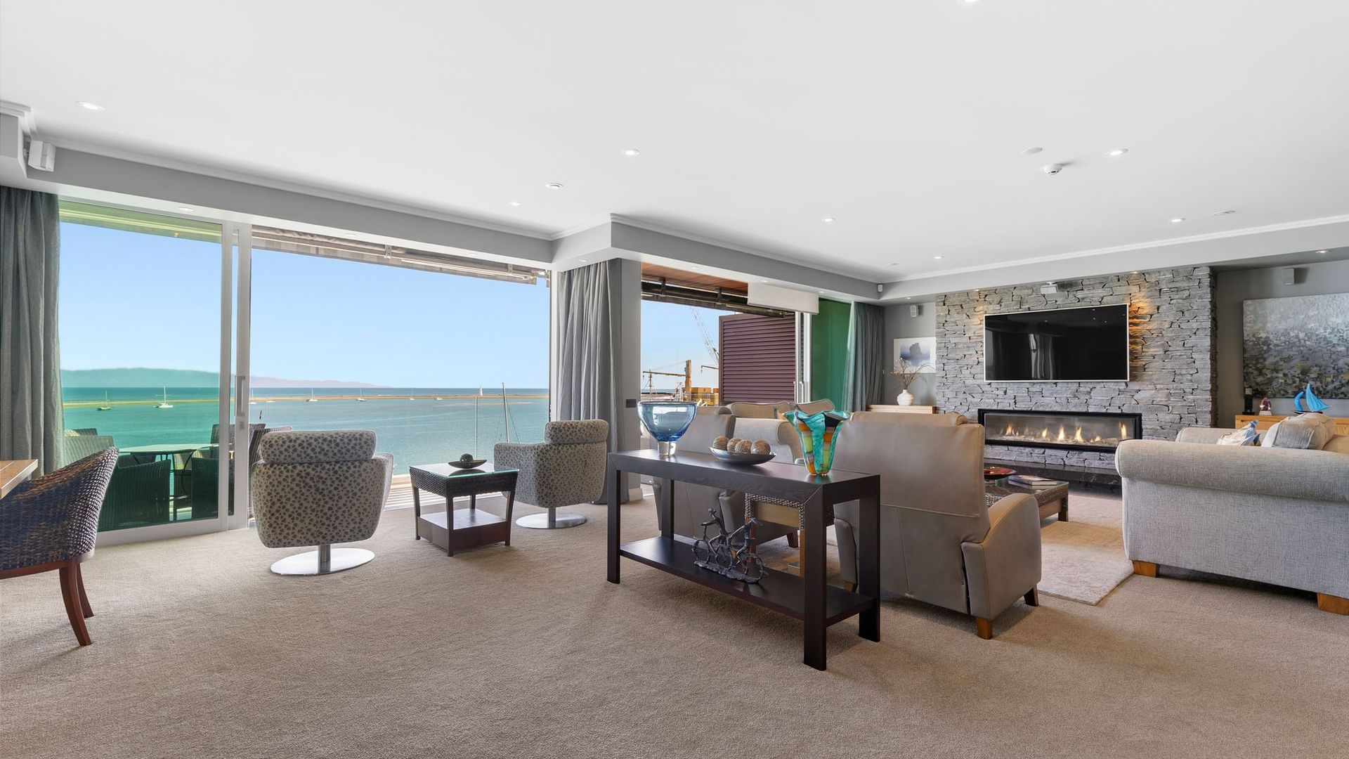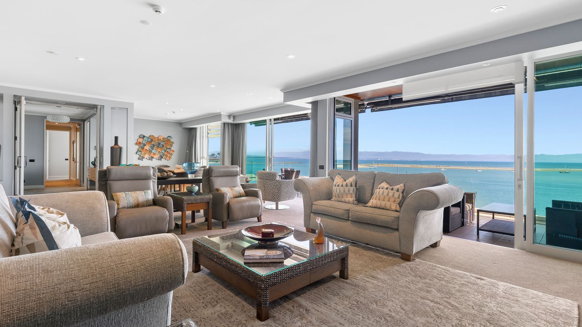 Welcome to 208/283 Wakefield Quay the penthouse suite in Tower Two of The Quay Apartments, delivering an exceptional level of prestige, privacy, and scale on Nelson’s iconic waterfront. Offering an expansive 312m² floor area (excluding decks), this residence has been fitted out to the highest standards, with panoramic sea views that flood into the living spaces and create an ever-present connection to the harbour and horizon. Designed for entertaining and effortless waterfront living, the home delivers exceptional indoor-outdoor flow, opening seamlessly onto five separate deck areas providing multiple vantage points for sun, shelter, and uninterrupted coastal outlooks throughout the day.