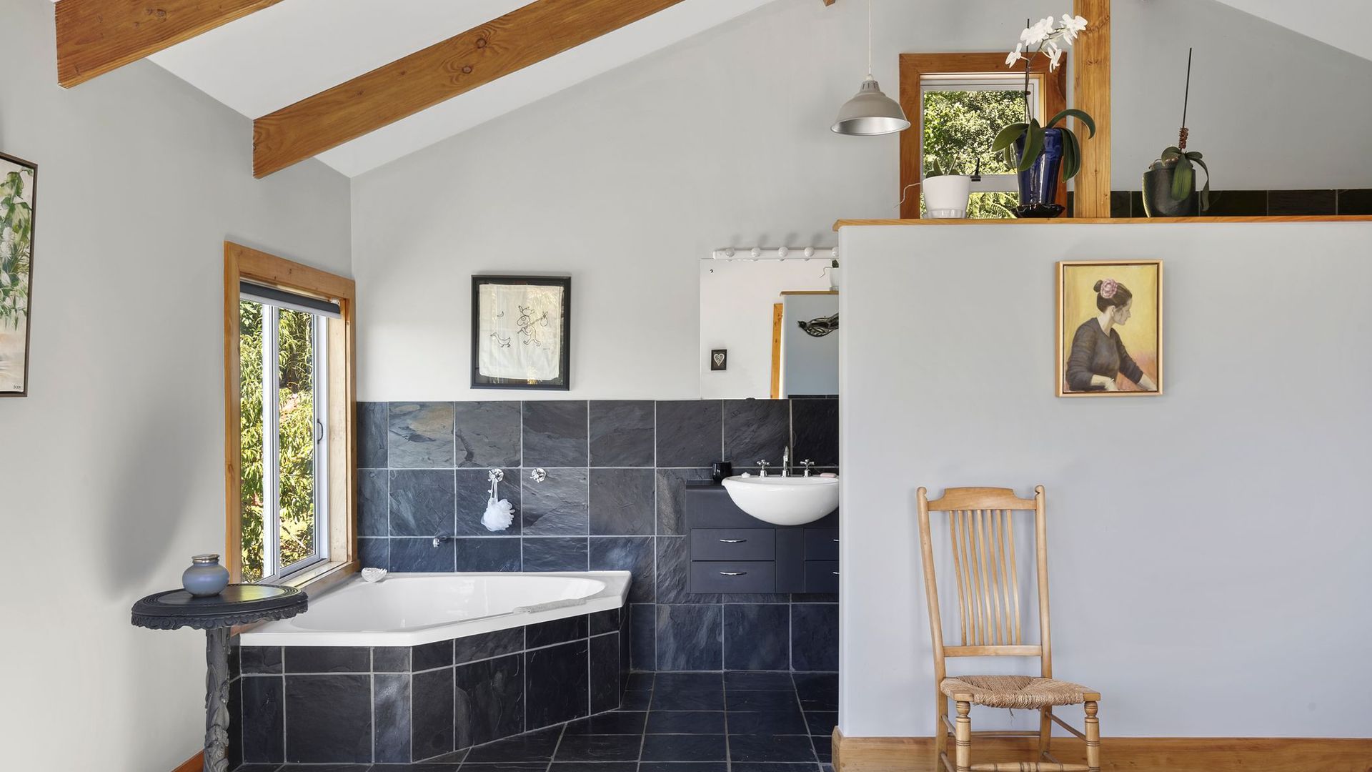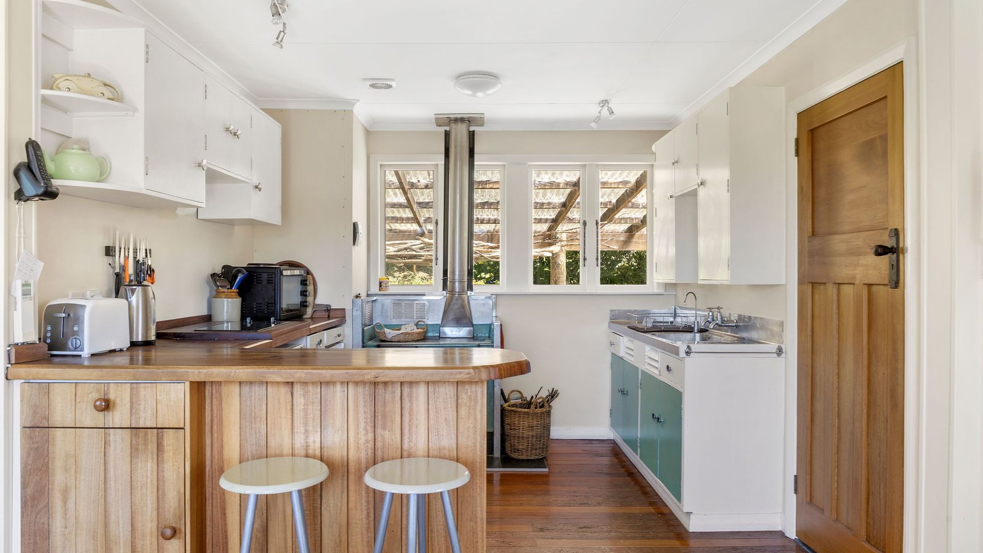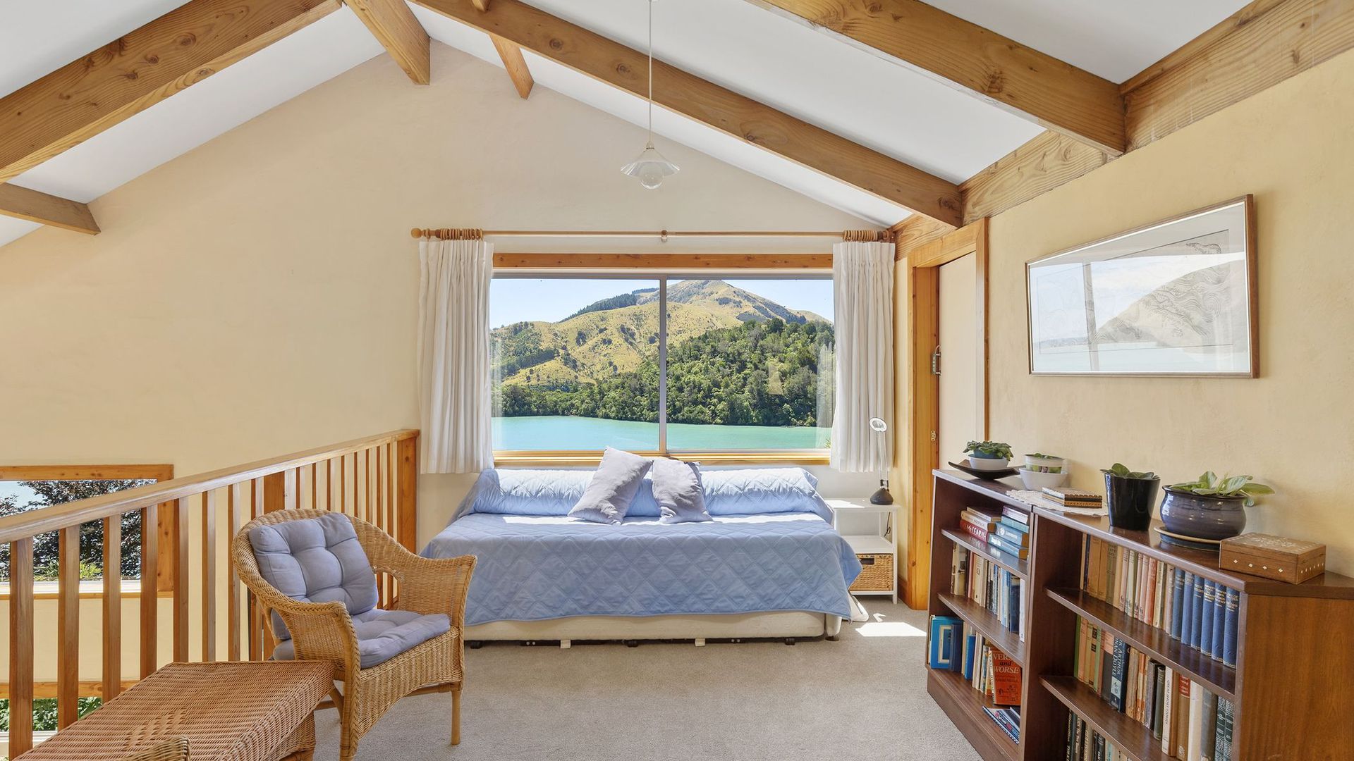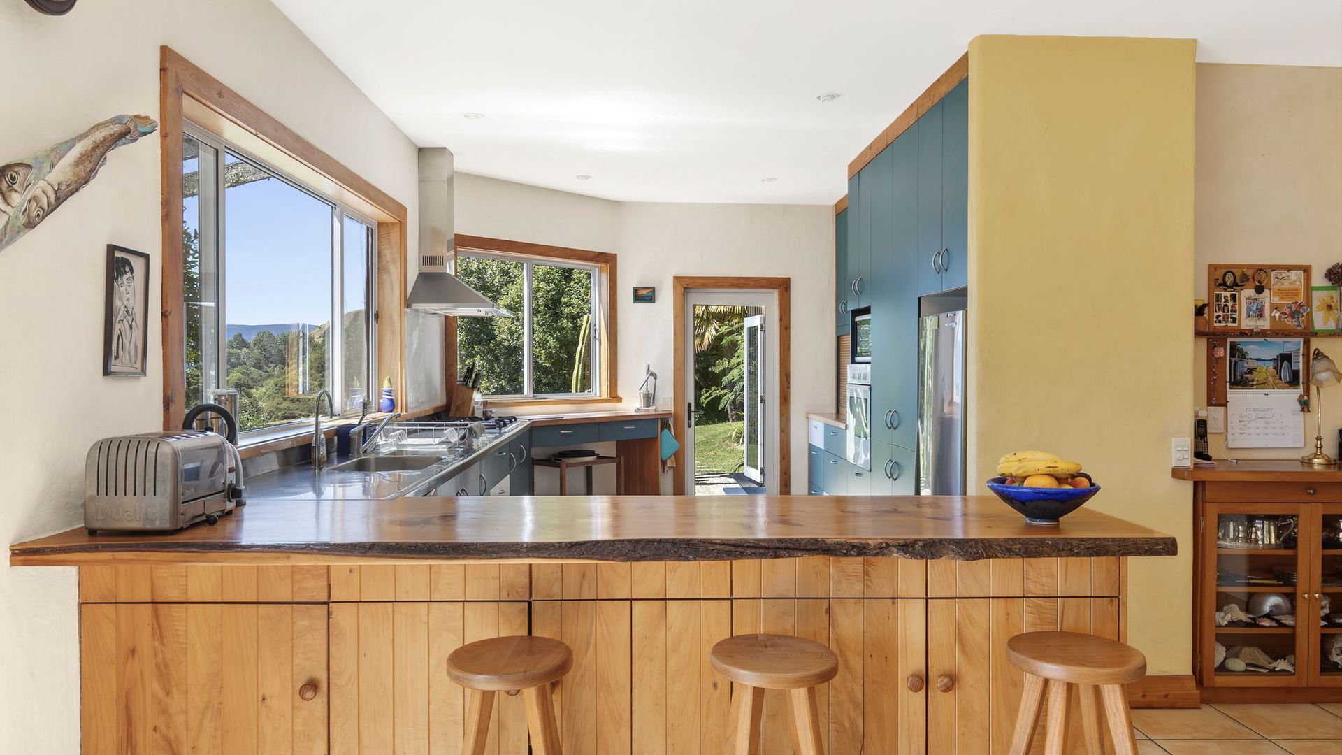 The property comprises two dwellings, offering flexible living options for extended family, guests, or home and income potential. The main two-storey residence features two bedrooms and two bathrooms, a sunroom bathed in natural light, and a charming mezzanine space ideal as a library nook, daybed retreat, or home office. All-day sun combines with a log burner to provide natural warmth and ambience. A separate two-bedroom cottage provides additional accommodation with its own sense of privacy, making it ideal for guests, extended family, or potential income. A heat pump ensures year-round comfort. The established gardens are glorious and thoughtfully curated, enhancing both privacy and connection to nature. They are abundant, featuring not only native plantings but also a myriad of fruit trees, adding richness and life to the grounds. Water is supplied via rain catchment, and the addition of solar hot water further enhances the property’s self-sufficient appeal, creating a lifestyle that is both sustainable and rewarding. This is a property for those seeking space, stillness, and perspective, a place to retreat from the hustle while remaining just 25 minutes from the city. Local cafes, a superette, petrol station, and primary school are nearby, with school bus pick-up available for colleges. A rare opportunity to secure an exceptional lifestyle property in one of the region’s most scenic coastal locations.