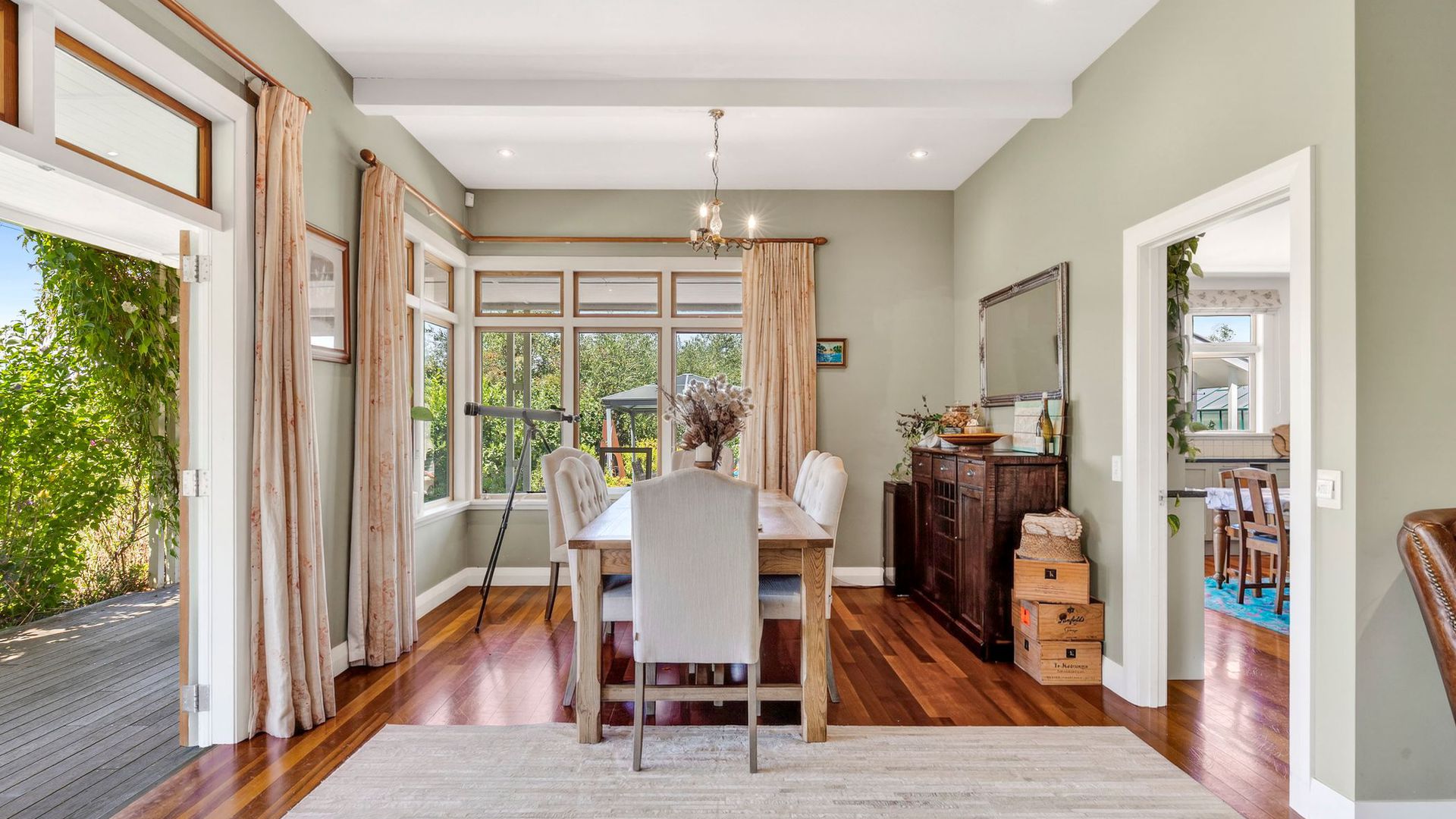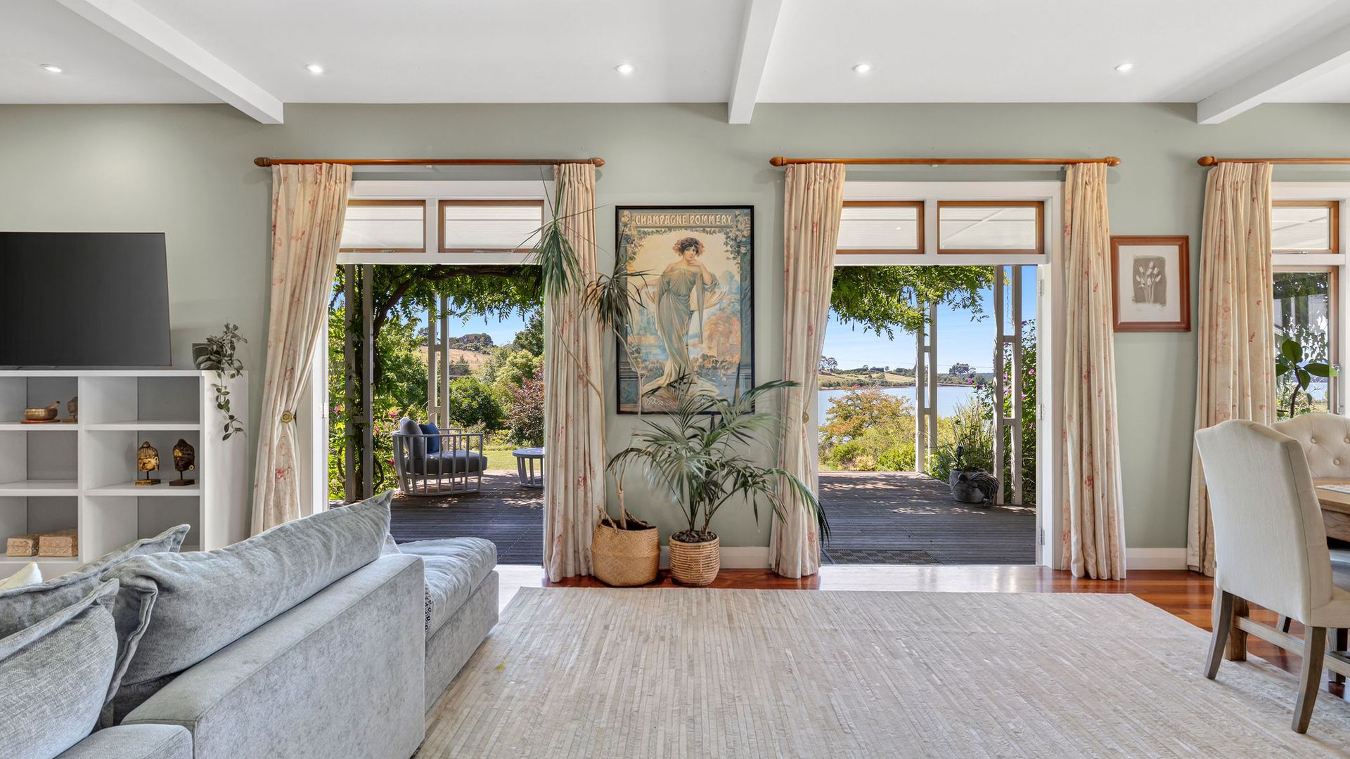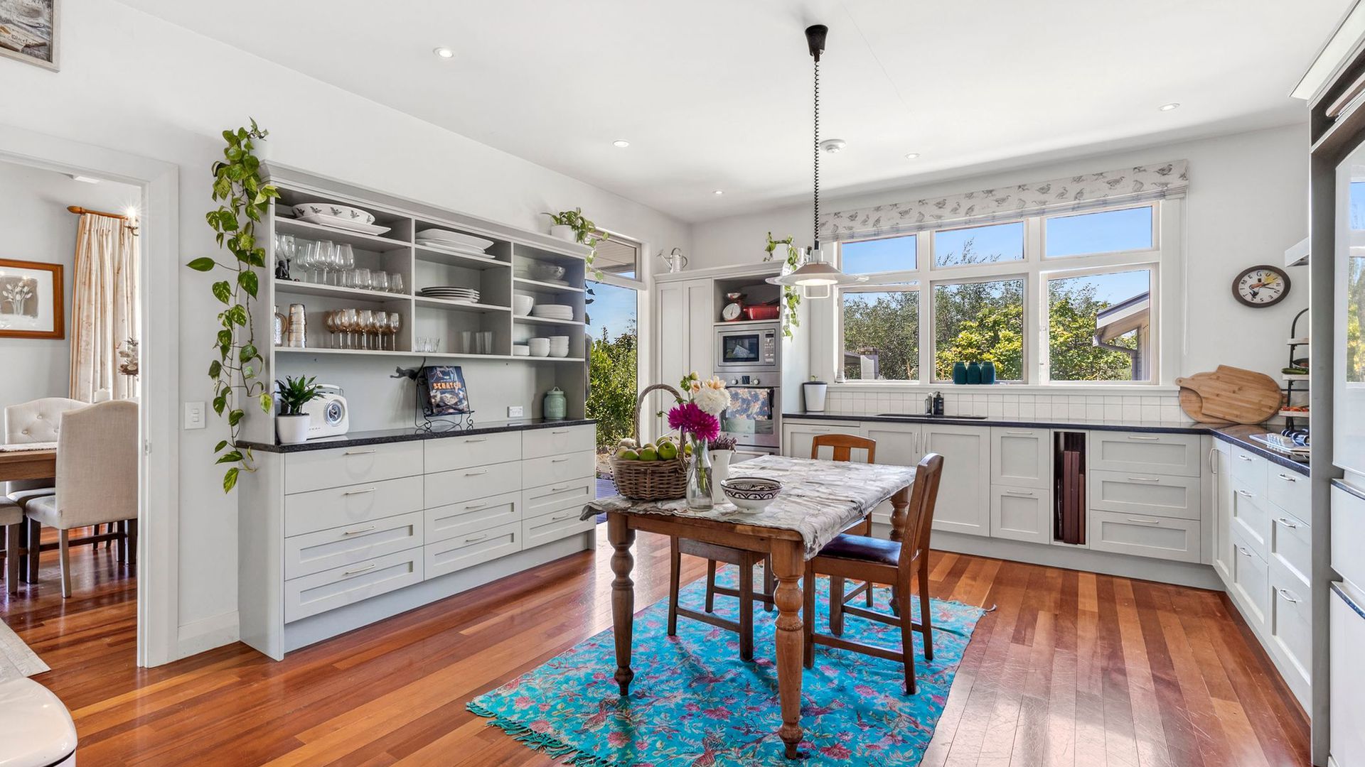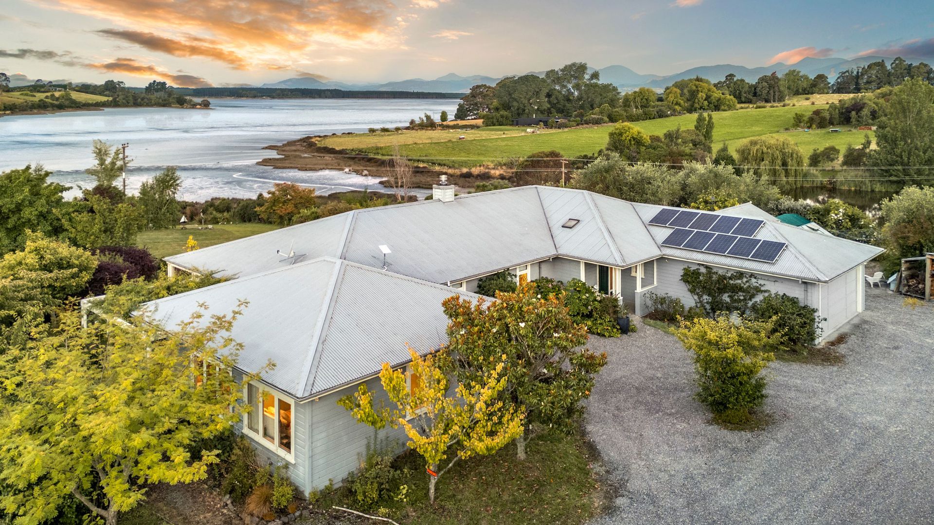 At the heart of the home, the timeless shaker kitchen with a separate scullery is both elegant and highly functional, designed for effortless entertaining and everyday ease. Indoor-outdoor living is seamless, with the wraparound verandah extending the home into its setting, inviting long afternoons overlooking the lawns and estuary beyond. A separate guest wing, currently utilised as an Airbnb, offers privacy and flexibility for visitors or premium income potential. With a double internal-access garage, multiple garden sheds, and generous off-street parking, the property is as practical as it is beautiful. Add in a heritage orchard, cottage gardens, and a landscape that feels established and timeless, and the result is a waterfront lifestyle property that is genuinely rare. A home of quiet confidence, architectural, established, and exceptionally liveable.