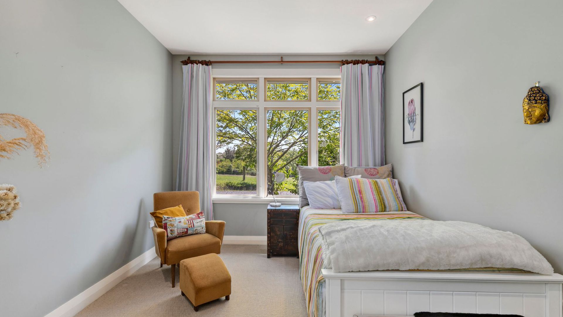 Positioned on the edge of the Waimea Estuary, this architectural waterfront residence delivers a lifestyle that feels both grounded and elevated, just a short distance from Richmond and Mapua, yet entirely removed from the pace of town. A long sweeping driveway lined with mature trees creates a sense of arrival, opening into rolling lawns, established gardens, and uninterrupted views stretching across the bay. The home is beautifully resolved, offering three bedrooms, two bathrooms, a powder room, and the added versatility of an office or fourth bedroom. Wide entry points and a long central hallway create a sense of scale, complemented by built-in shelving and thoughtful detailing throughout. High-stud living areas, Matai flooring, double glazing, ducted heating, and an open fire ensure comfort and quality are delivered year-round.