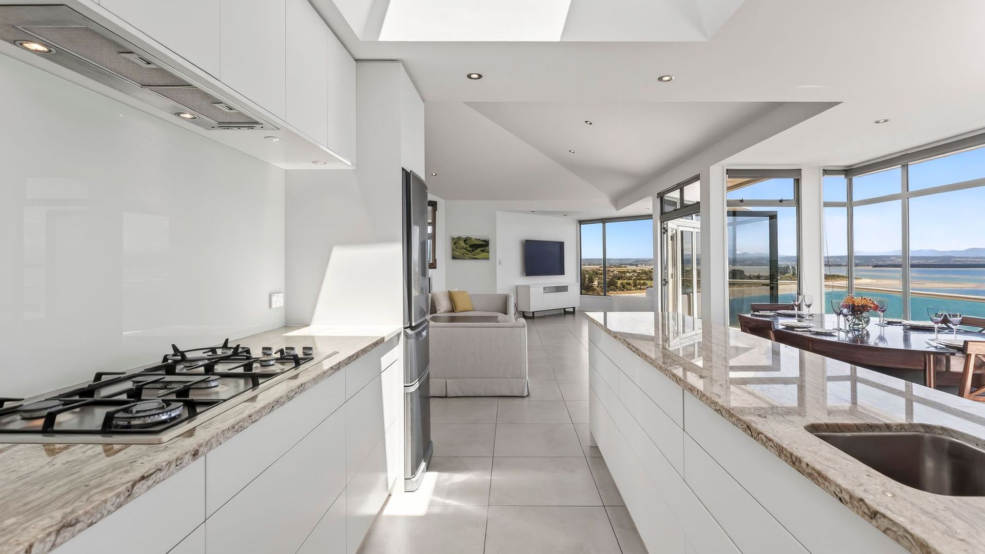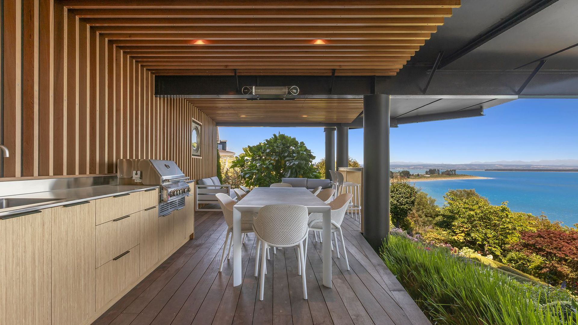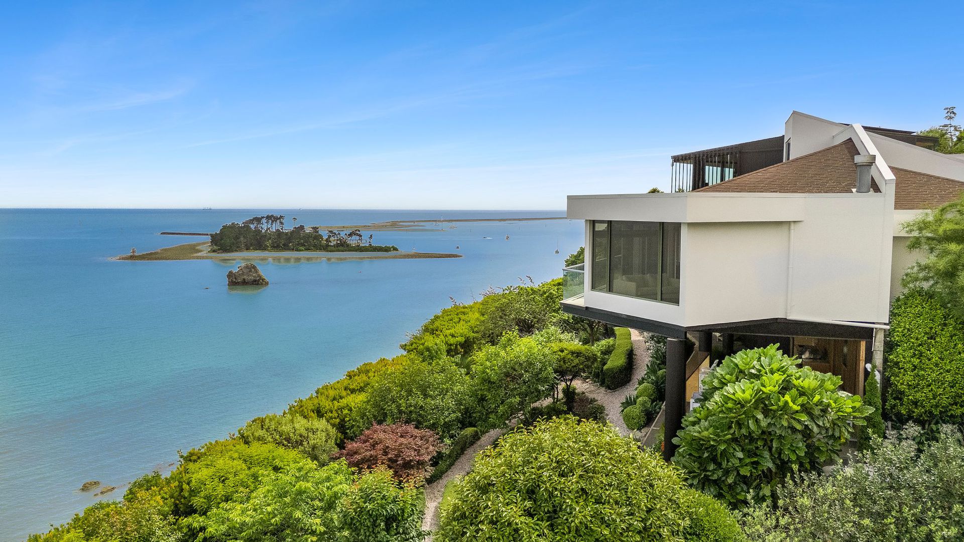 At 36a The Cliffs, the boundary between home and horizon quietly dissolves. Light moves through the living spaces as the sea surrounds you, the outlook wrapping the home in an ever-changing coastal panorama. The connection continues as you move through the house and down to the outdoor kitchen fully equipped, beautifully positioned, and set within lush, established gardens, with the view still unfolding before you. Here, long evenings unfold effortlessly. The sound of water, the softness of light, the sense of being immersed in sea and sky. Three bedrooms, including two ensuites, offer retreat and privacy, while the home as a whole is designed for calm, connection, and ease.